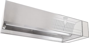 - Front design prohibits condensation and directs grease-laden vapors toward the exhaust filter bank. Polished stainless steel on the interior and exterior of the front enhance aesthetics.