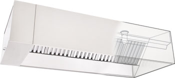 - Front design prevents condensation and directs grease-laden vapors toward the exhaust filter bank.