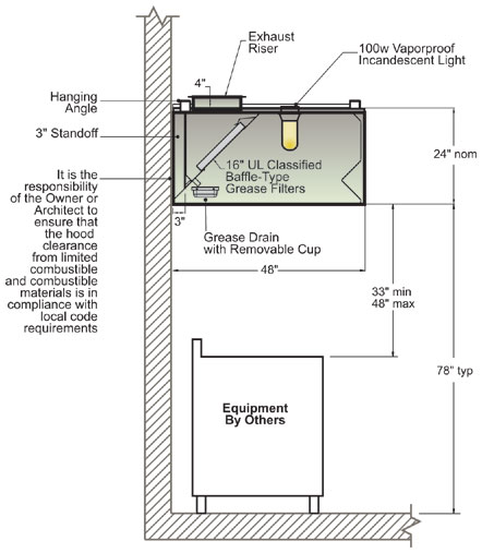 - A built-in wiring chase provided for optimal positioning of electrical controls and outlets on the front face of the hood without penetrating capture area or requiring external chaseway.